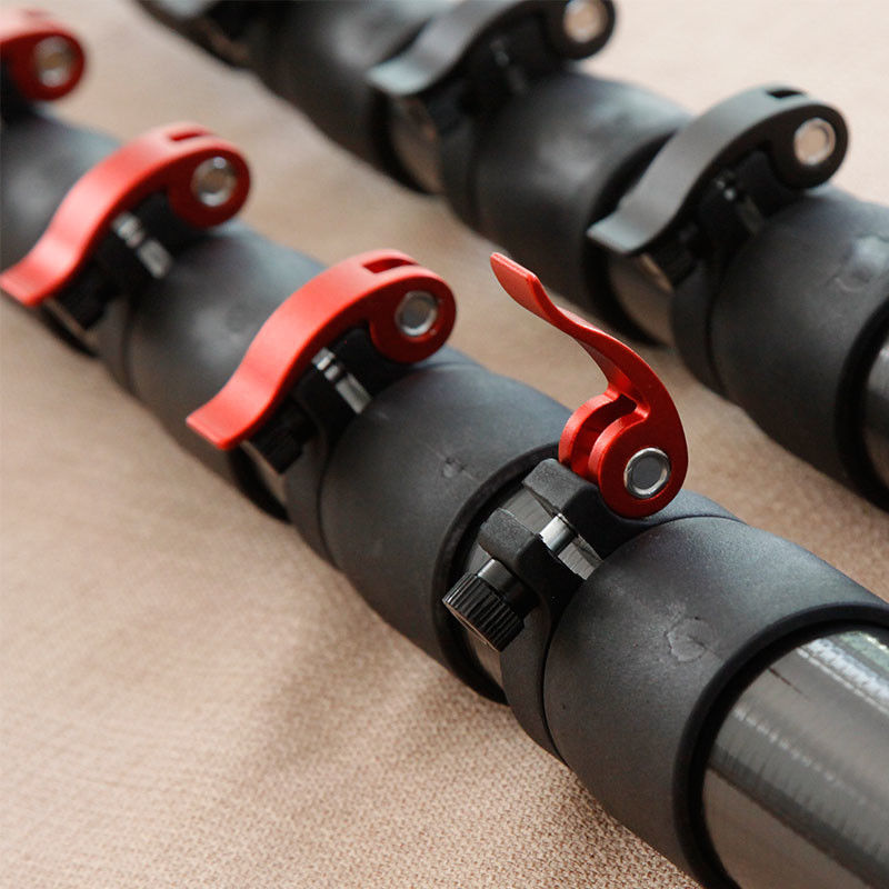 Ισχυροί και ελαφροί τηλεσκοπικοί σωλήνες τυλιγμένοι σε κυλίνδρους από ανθρακονήματα με σφραγίδες γρήγορης απελευθέρωσης.και οι στύλοι θα μπορούσαν να κλείσουν μέχρι ένα μικρό μήκος, η οποία είναι συνήθως μικρότερη από 2,5 μέτρα για εύκολη μεταφορά και αποθήκευση.